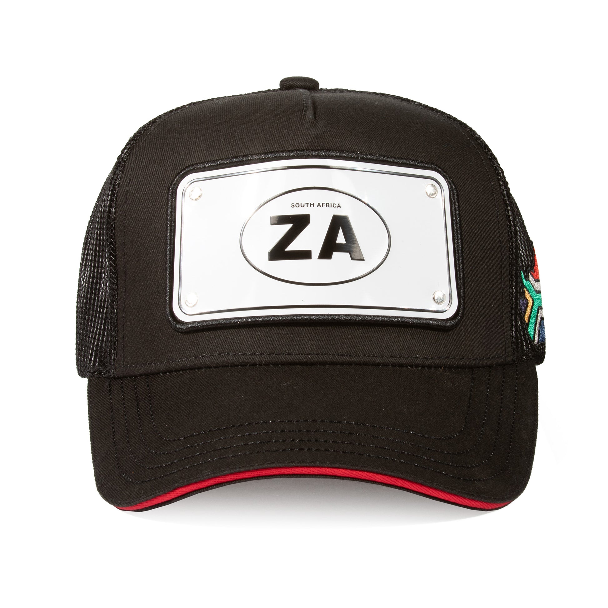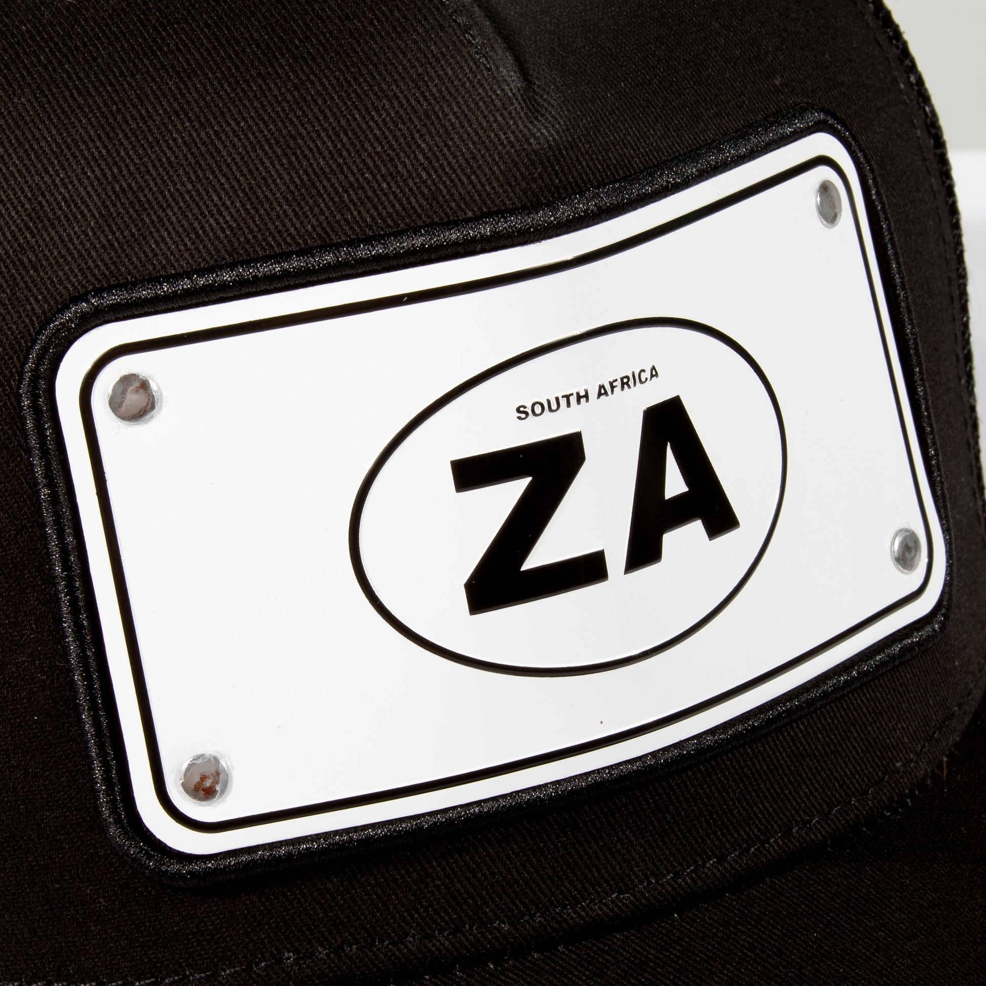 - Embossed aluminium “ZA” front plate and embroidered cotton South Africa side patch